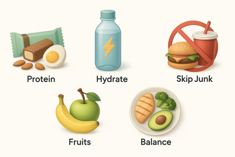 🥜 Pack Protein First – Snack bars, nuts, or boiled eggs keep energy steady longer than sugar-loaded snacks.