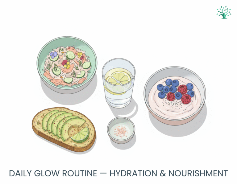 In the next section, I’ll give you a simple, gentle structure to help you connect your meals, hydration, and skin rhythm without overwhelm — and use it to support your natural glow every day.