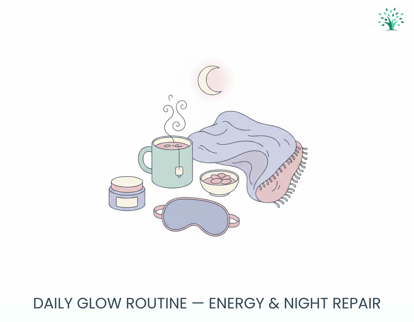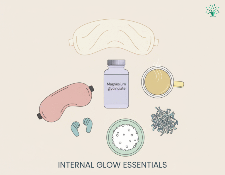 These are my go-to internal supports for glow from within nutrition — calm digestion, steady hydration, and smoother overnight repair all help your skin stay brighter and more balanced. This set of small steps is what helps everything stay steady throughout the day. These choices support your internal rhythm so your skincare can work more effectively.