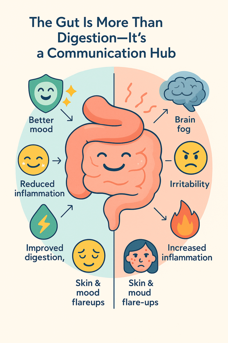 I think of it like a fuel tank. It processes your nutrients, communicates with your brain, manages your mood, supports your immune system, and even impacts inflammation and pain. So when your gut is off? Everything’s off.