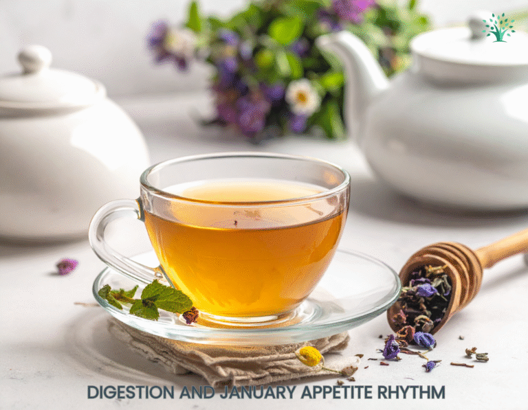 Digestion plays a central role in January Appetite. When meals are rushed, skipped, or inconsistent, hunger cues become harder to read. Bloating or heaviness can mask hunger, while delayed digestion can cause sudden cravings later.
