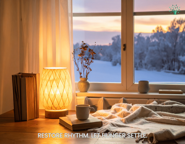 When January arrives, appetite cues don’t immediately reset. Hunger may disappear during the day and surge at night. Fullness may feel delayed or unclear. These signals reflect rhythm loss, not a need for control.
