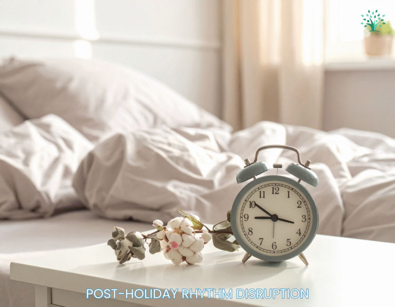 Sleep quality plays a major role in January Energy, even when total sleep time hasn’t changed much. During the holidays, late nights and irregular schedules disrupt circadian rhythm. By January, bedtime may be earlier again, but sleep depth often hasn’t fully recovered.