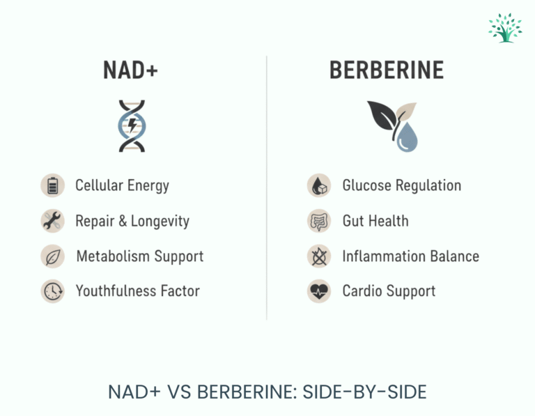Many of you have found yourselves wondering the same thing lately, especially when energy dips or your skin feels out of rhythm: “When I compare NAD+ vs Berberine, which one actually helps with energy, skin, and metabolism?” It’s a natural question. Aging, holiday stress, long travel days, and inflammation can make your body feel slower, heavier, and less steady than usual. When that happens, you want clarity — not hype, not confusion, and not another supplement trend that complicates things.