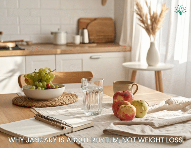 January Is About Rhythm, not weight loss. After the holidays, your body responds better to consistent sleep, meals, and daily routines than extreme resets or restriction.