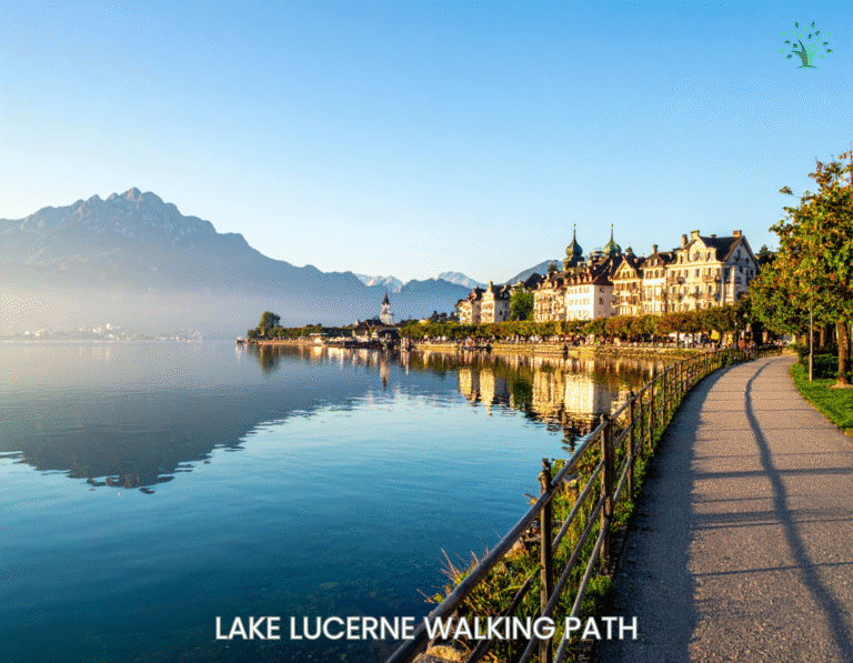 As soon as you leave the train station, a walking path stretches along Lake Lucerne. Clear water, mountain views, and open sky create a setting that feels both peaceful and energizing.