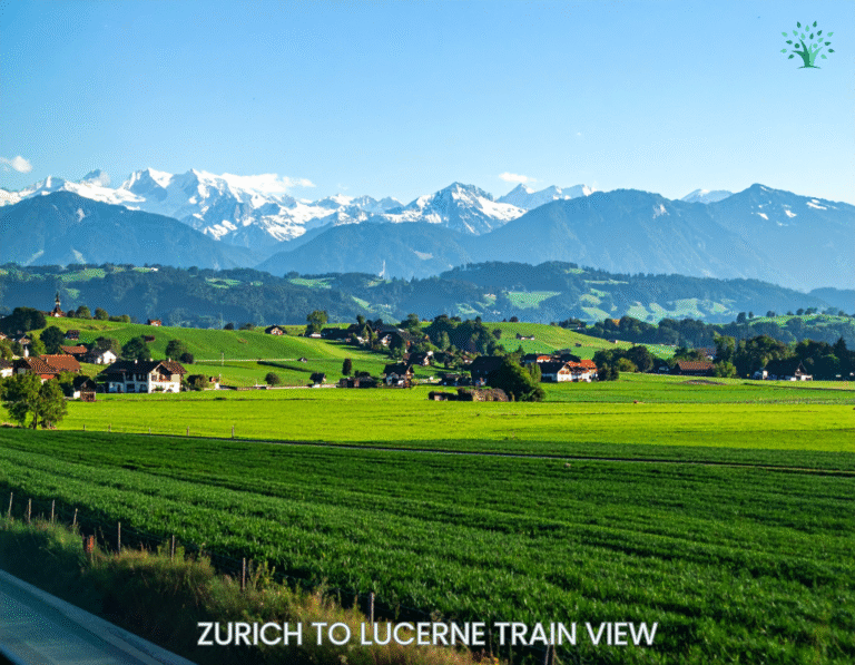 The train ride from Zurich to Lucerne takes about one hour, yet the shift in atmosphere feels much greater. Leaving Zurich, the landscape gradually opens into rolling countryside, lakes, and distant mountain silhouettes.
