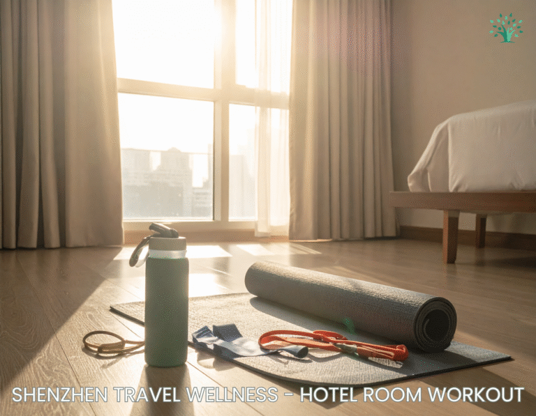I realized quickly that if I didn’t create my own rhythm, Shenzhen would dictate it for me—and I’d end up exhausted. For me, Shenzhen travel wellness meant building balance into the chaos. That started with hotel-room workouts. Many of the hotels outside downtown had fitness centers, but they rarely opened before 8 a.m., and I couldn’t afford to lose that much time before meetings. So I created my own 30–60 minute routine: push-ups, bodyweight squats, back stretches, jumping jacks, and bridges. It wasn’t fancy, but it got my blood flowing, loosened the stiffness from long flights, and kept me grounded before the day began.
