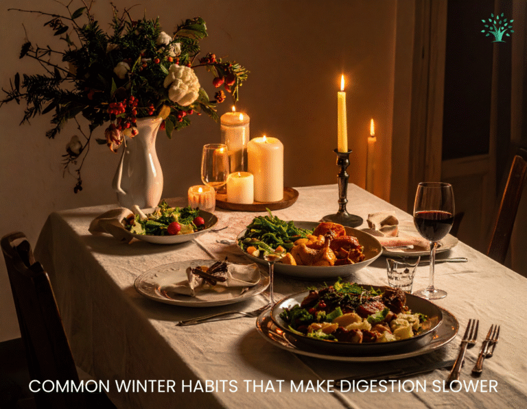 This is why winter digestion issues feel confusing. You may be eating “normally,” yet feel bloated, uncomfortable, or sluggish after meals. You might notice constipation, slower digestion, or a heavy feeling that lingers longer than usual. These changes aren’t a failure of willpower or food choices — they’re part of how the body adapts to winter conditions.
