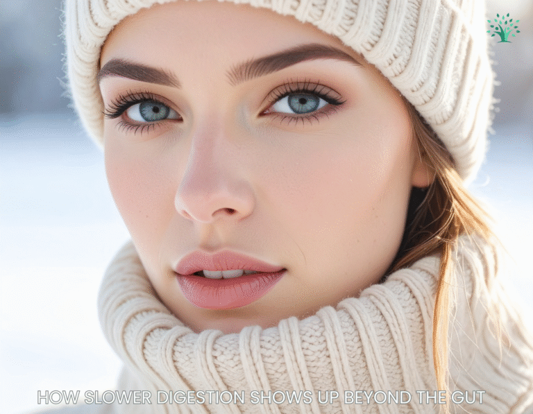 In this article, we’ll look at why digestion slows down in winter beyond food alone, how seasonal changes affect gut rhythm, and what actually helps support digestion — and skin — during colder months without forcing the body to behave like it’s summer.